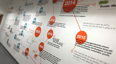 The DNA wall is a great, informative piece meant to convey the whole ethos of such an innovative design company. It maps their early beginnings from 1872 right through to today.